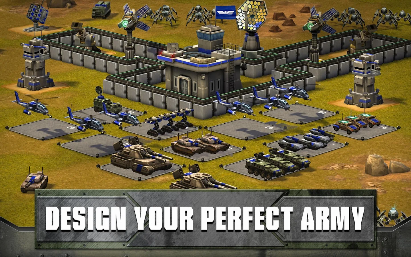 - DESIGN YOUR PERFECT ARMY from the arsenals of today’s militaries with battle-hardened tanks, drones, helicopters, and more.